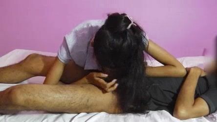 Sundar premika apne lover ke saath room mai gayi. Wahan par dono maje se sex ka khel khelne lage. Hot girl ne bade maje se chore ke kaale lund ko nikaal kar choosne shuru kar diya. Oral sex karte hue ladka ka lund tan gaya aur ladki usko deep throat blowjob dene lagi.